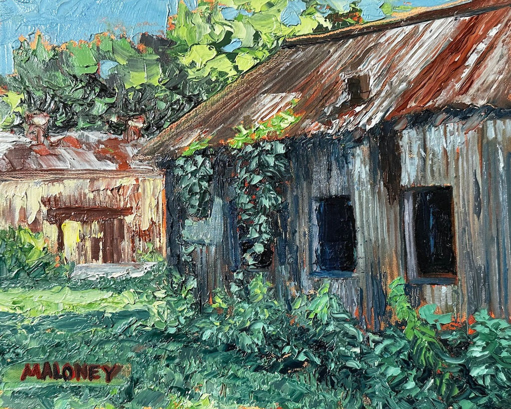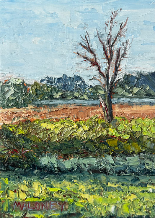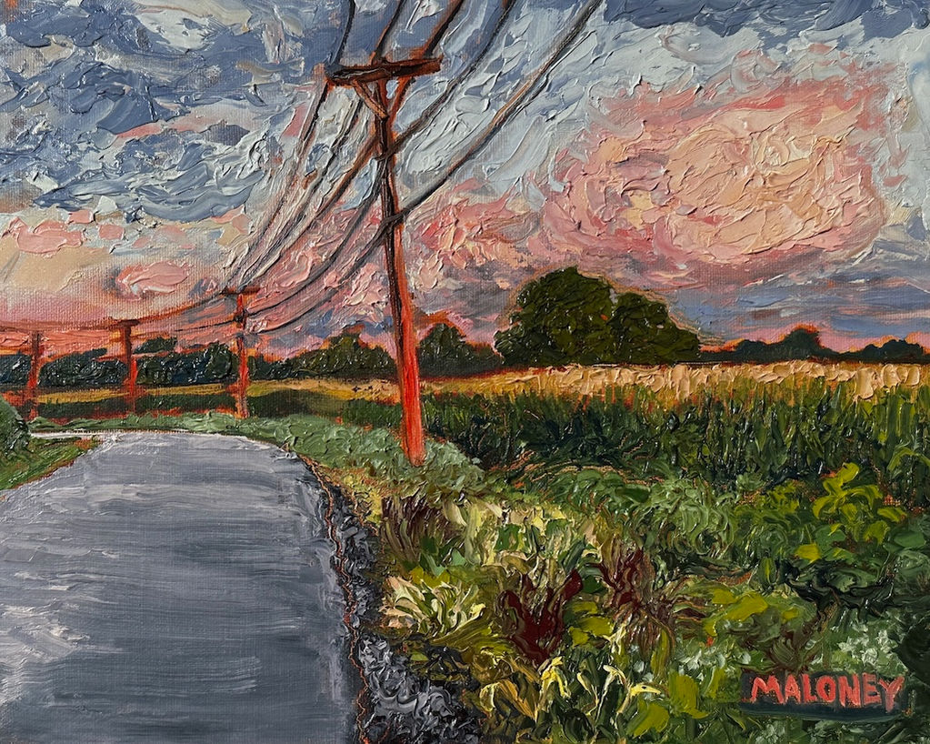 These paintings are about paint as much as place—thick, textured, and full of movement.